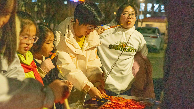 熟悉的烤架,豐(feng) 盛的食材,忙碌的身影。聖誕之夜,“佳”人們(men) 齊聚一堂,或在一旁談笑擼串,或三兩(liang) 搭檔包起水餃。