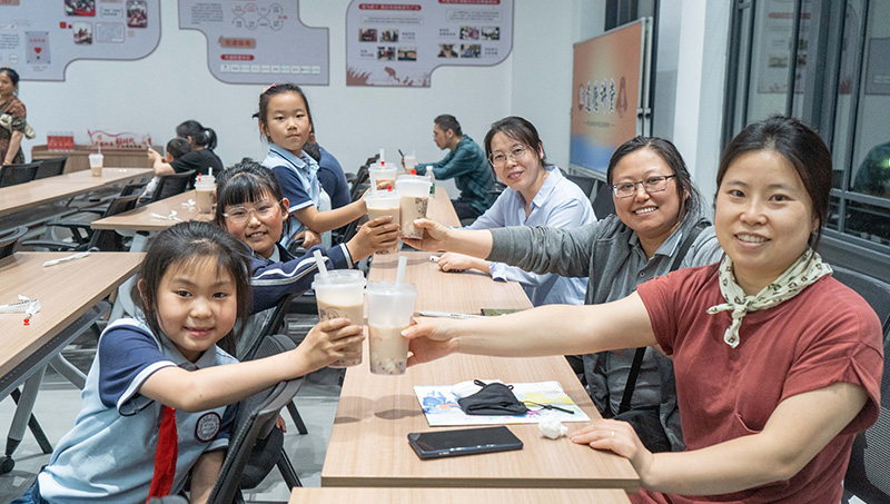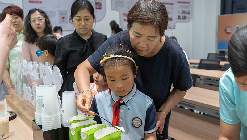 講座結束後,在公司誌願者的指導下,社區居民們(men) 以家庭為(wei) 單位,紛紛動手嚐試牛乳茶DIY,現場氣氛十分熱烈。大家利用現場提供的豆花、紅豆等食材,充分發揮創意,將普通的食材打造成了一款款營養(yang) 豐(feng) 富、口感獨特的美味牛乳茶。在製作過程中,居民們(men) 不僅(jin) 體(ti) 驗到了動手製作的樂(le) 趣,還了解到食品原料的選擇和搭配對於(yu) 飲品口感和營養(yang) 價(jia) 值的影響。