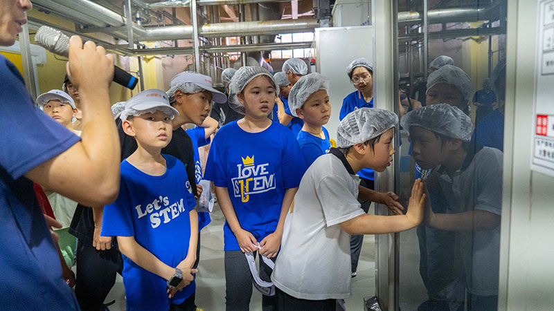 探索咖啡奧秘,體(ti) 驗創意茶飲的新歡樂(le) 。7月2日,來自斯坦星球研學營的師生們(men) 走進918博天堂食品,並在這裏開啟了一場融合實景觀摩、知識科普、實踐創意於(yu) 一體(ti) 的探索之旅。