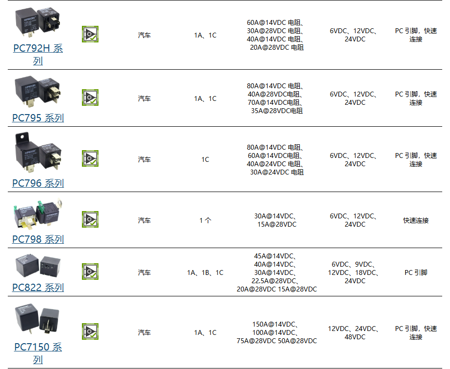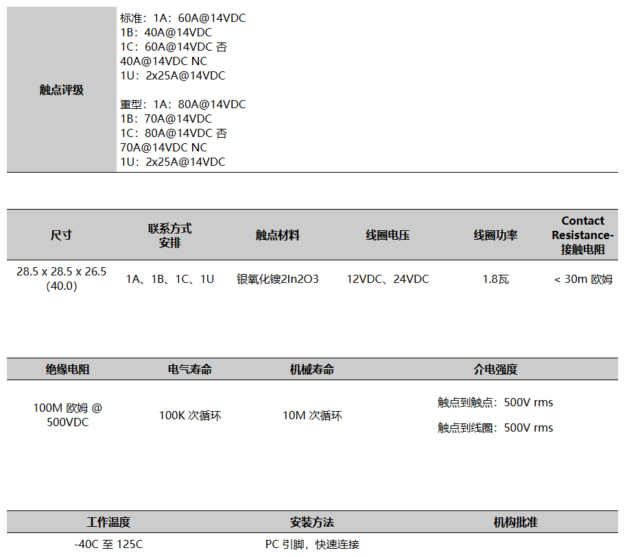 大开关容量高达80A PC引脚和快速连接安装 适用于汽车和灯具配件 QS-9000和ISO-9002认证制造