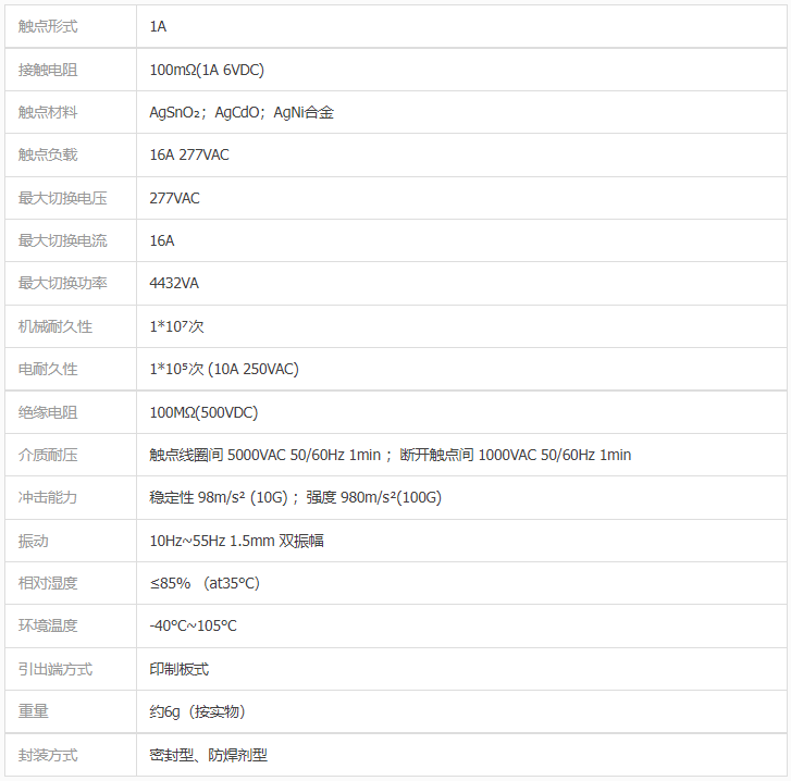 ◆ 小型功率继电器
